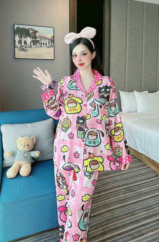 Sanrio Characters Satin Pajama Long Sleeve