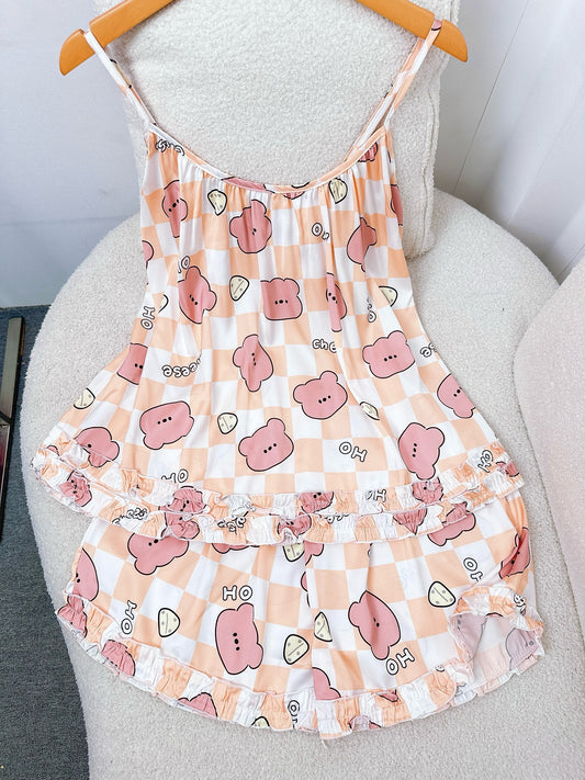 Cream Brown Bear Satin Tank Top Pajama Short SetRegular price $29.99 USDRegular priceUnit price per-