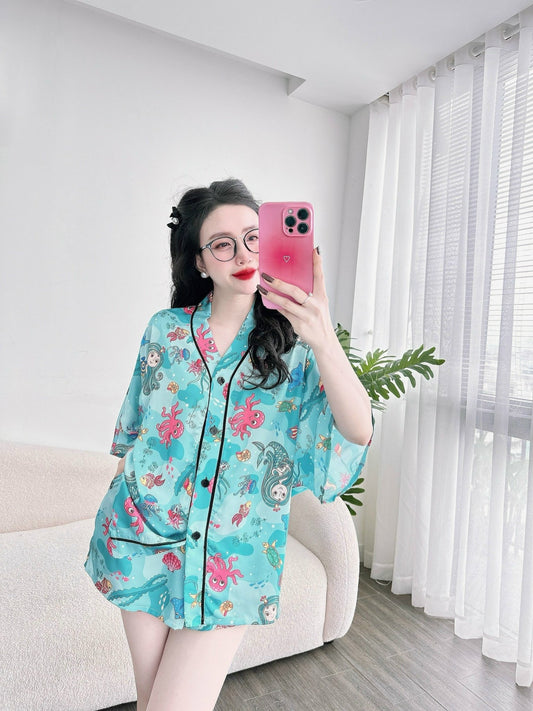 Blue Under the Sea V Neck Satin Short SetRegular price $29.99 USDRegular priceUnit price per-