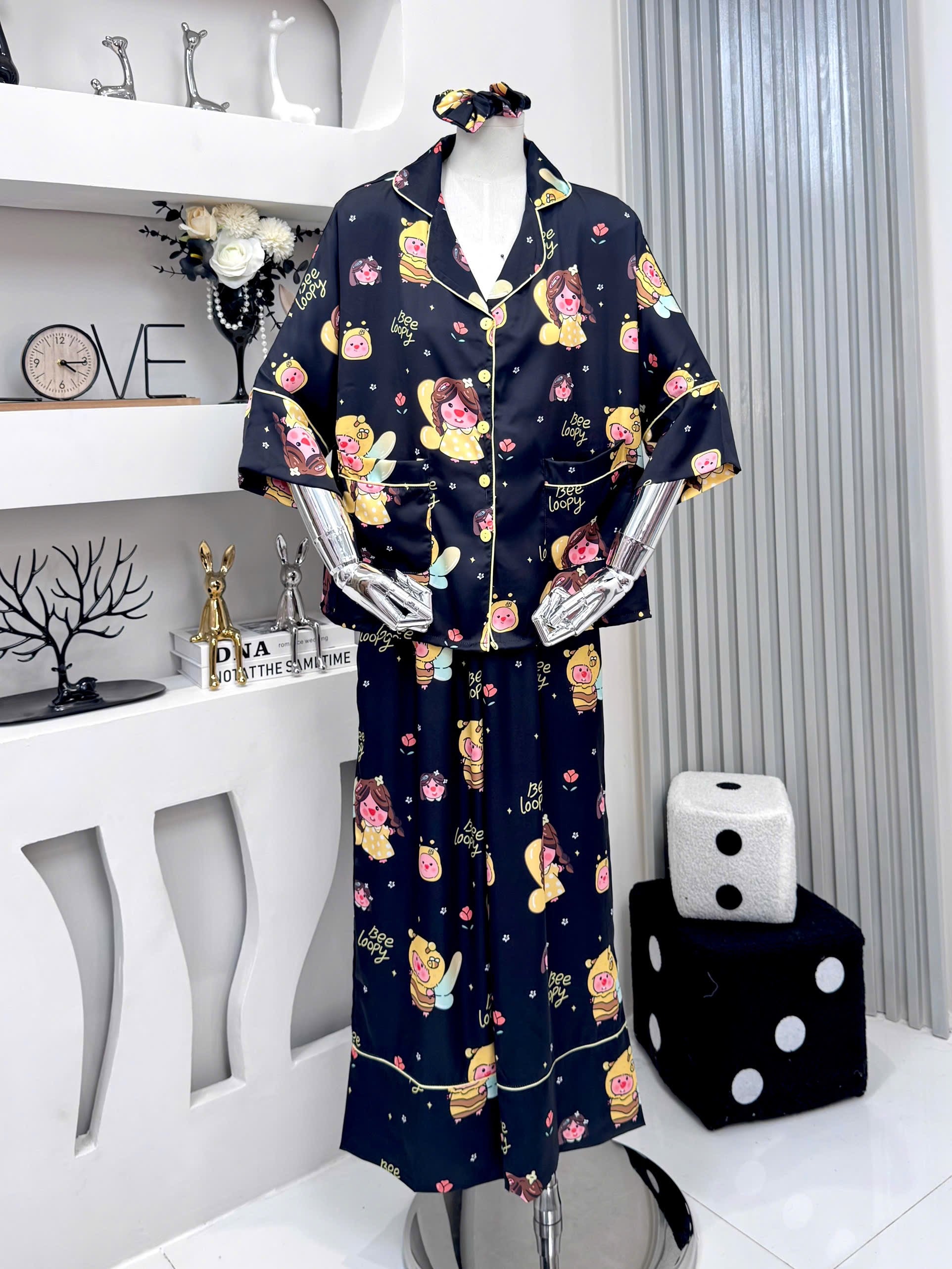 This Satin Short Sleeve Pajama Set for women offers ultimate comfort and a cute design featuring adorable patterns. Perfect for cozy nights in or relaxing loungewear, these soft PJs are made from satin to keep you cool and stylish.