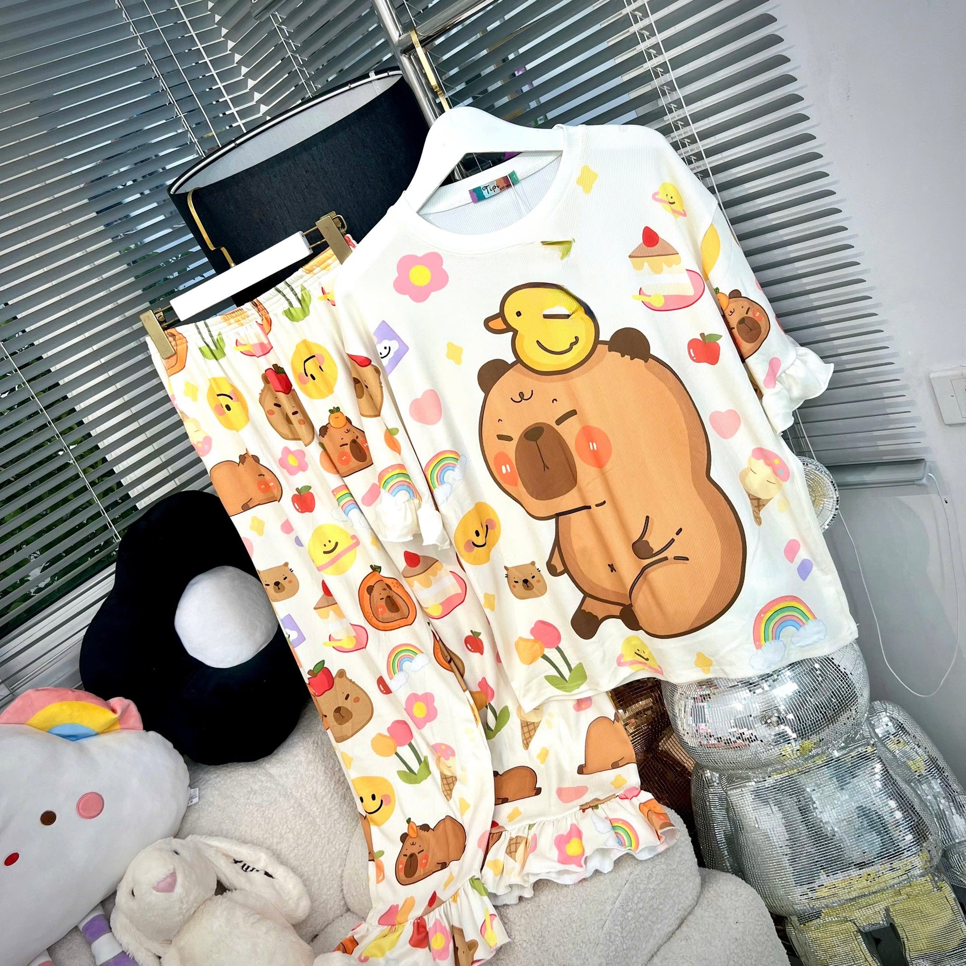 Capybara Ribbed Cotton Pajama Short Sleeve