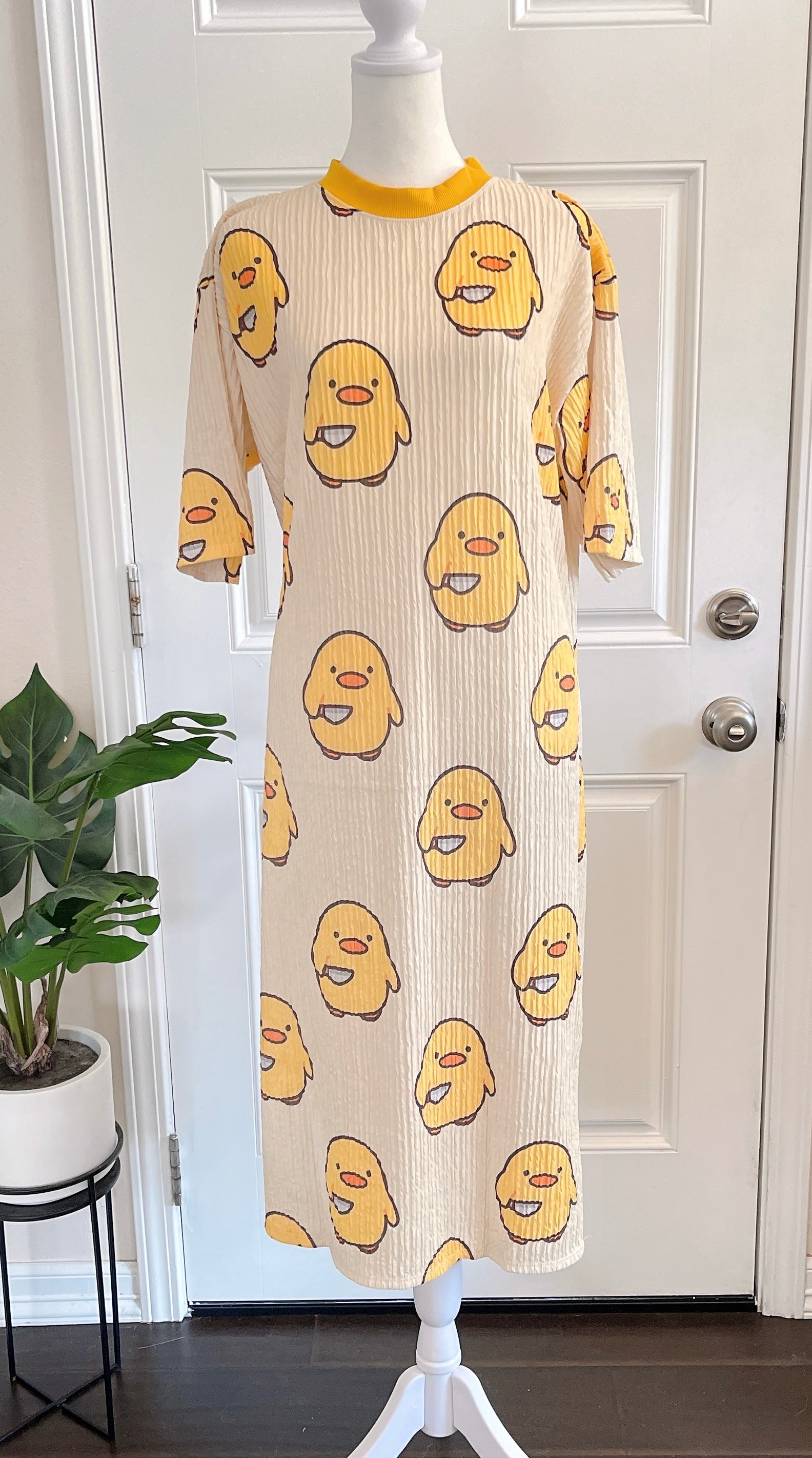 Cool Yellow Duck Oversized Stretchy Pleated Tshirt Dress