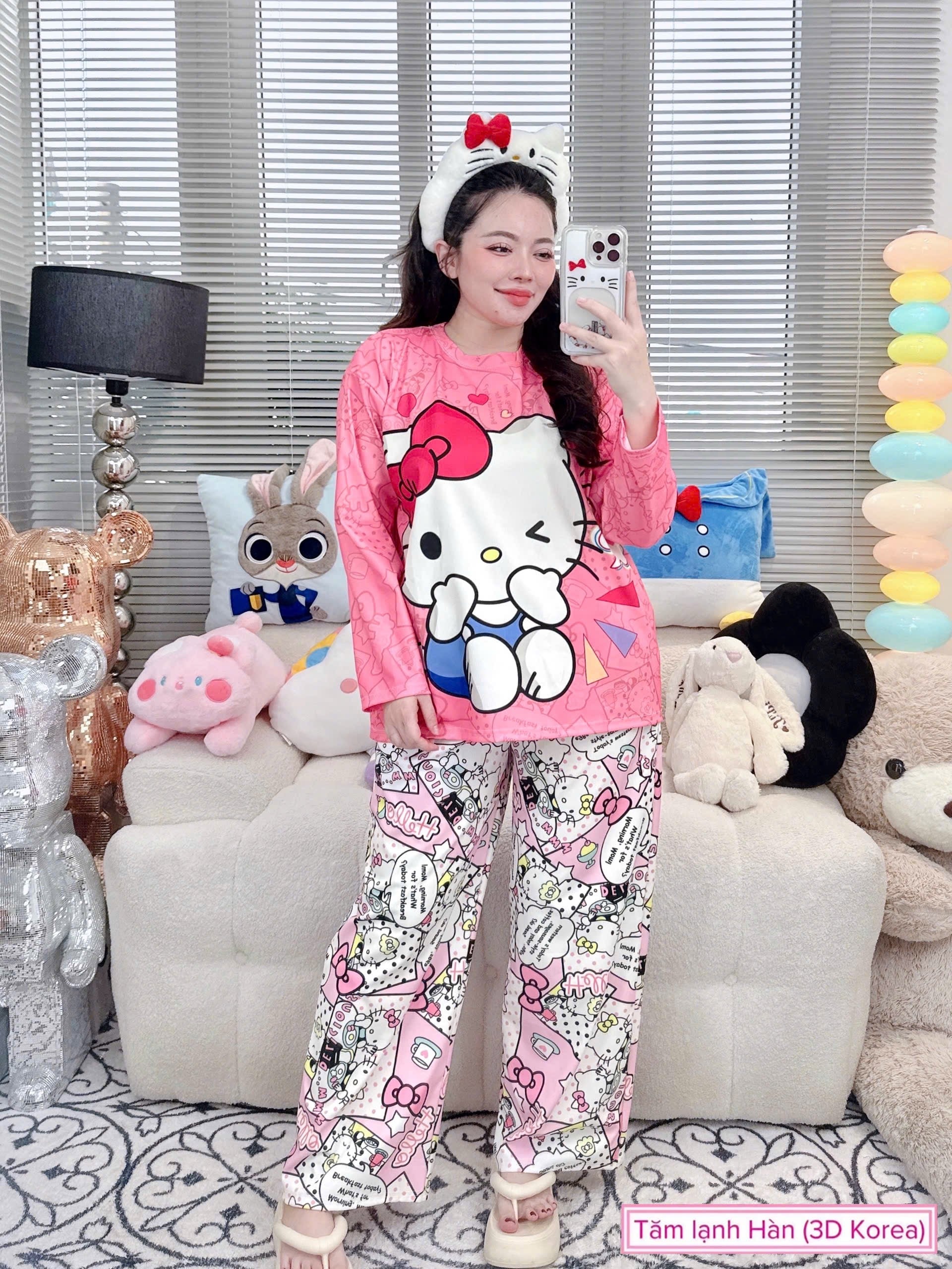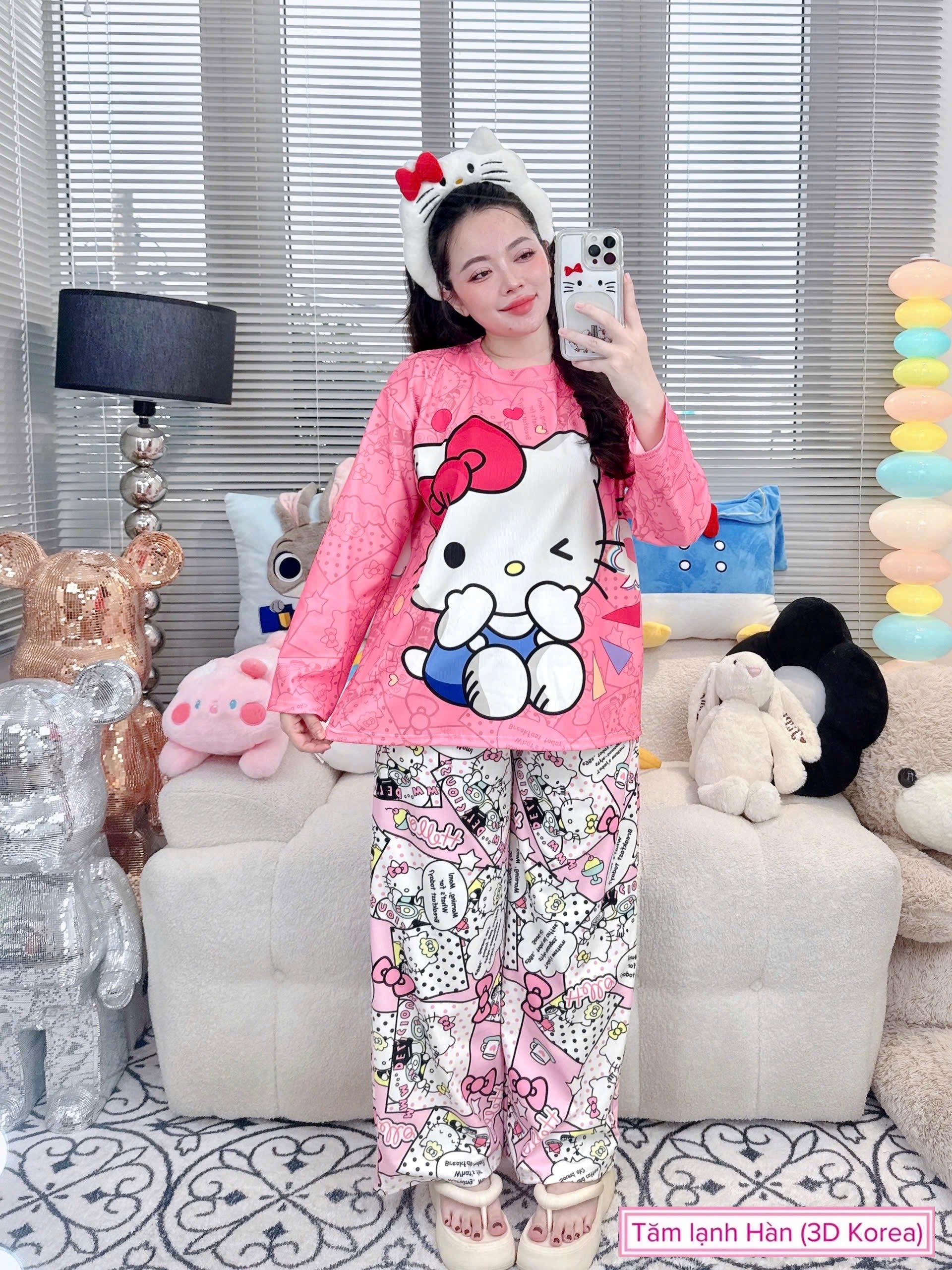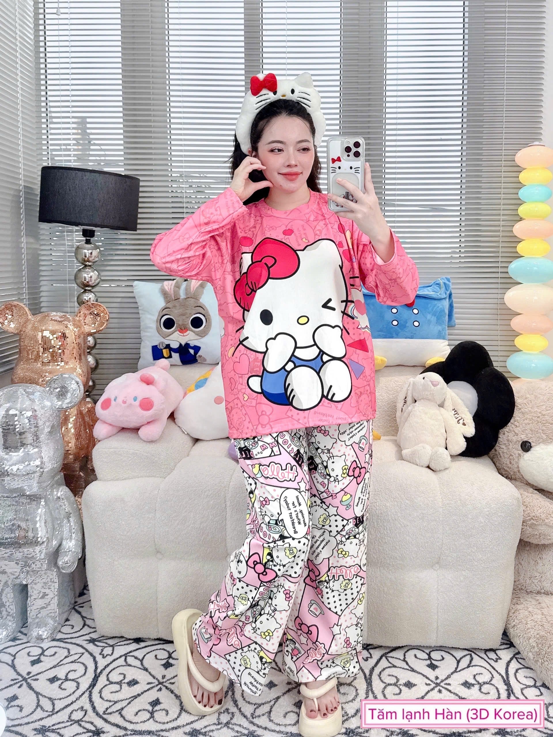 Cute Hello Kitty Ribbed Cotton Pajama Long Sleeve