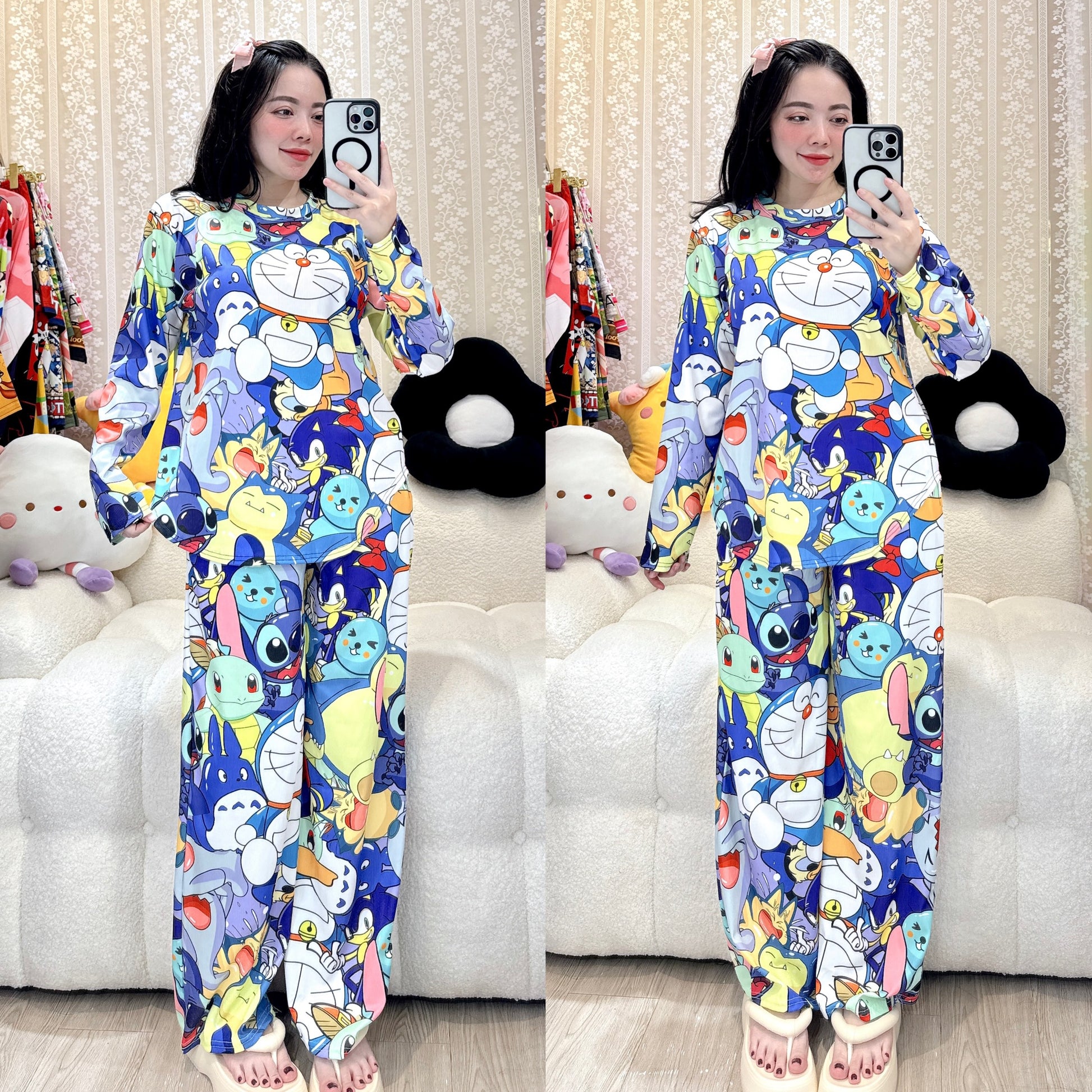 Doraemon and Monsters Ribbed Cotton Pajama Long Sleeve
