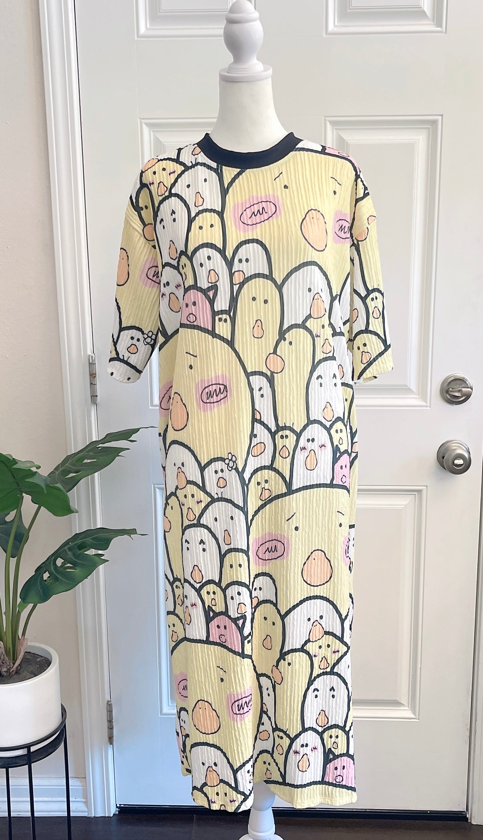 Funny Duck Oversized Stretchy Pleated Tshirt Dress