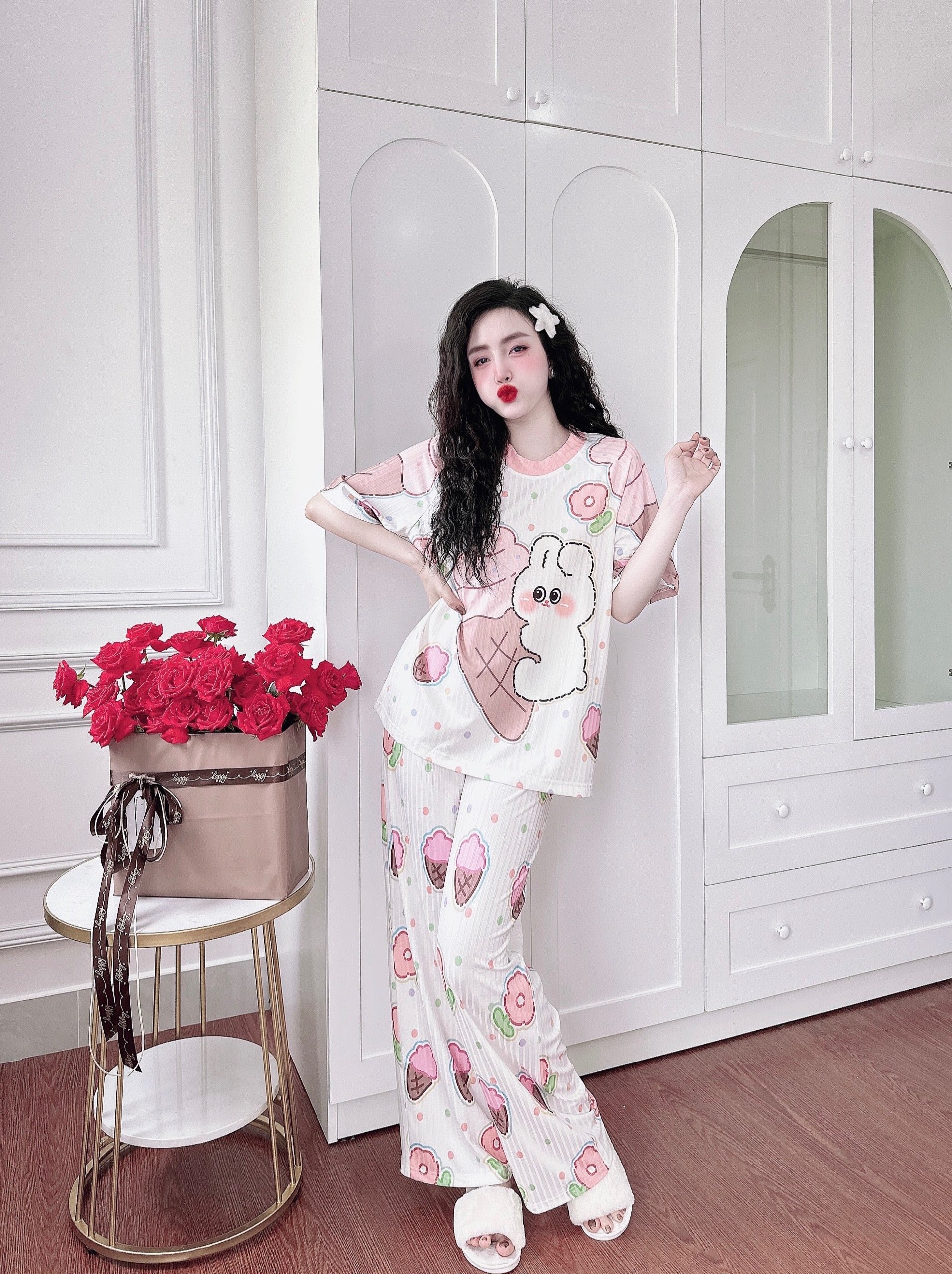 Ice Cream Bunny Ribbed Cotton Pajama Short Sleeve