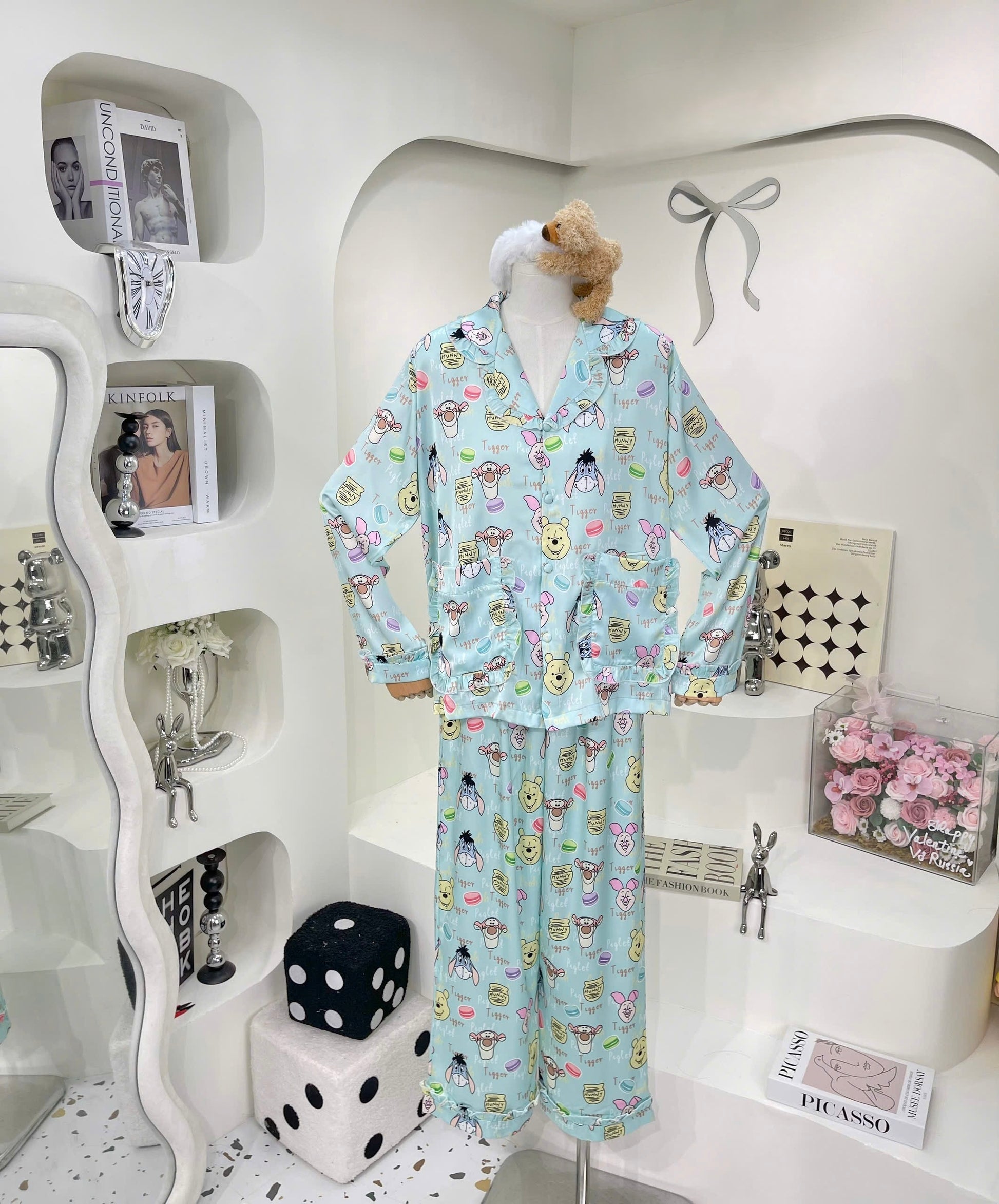 Minty Blue Pooh Bear Satin Pajama Long Sleeve