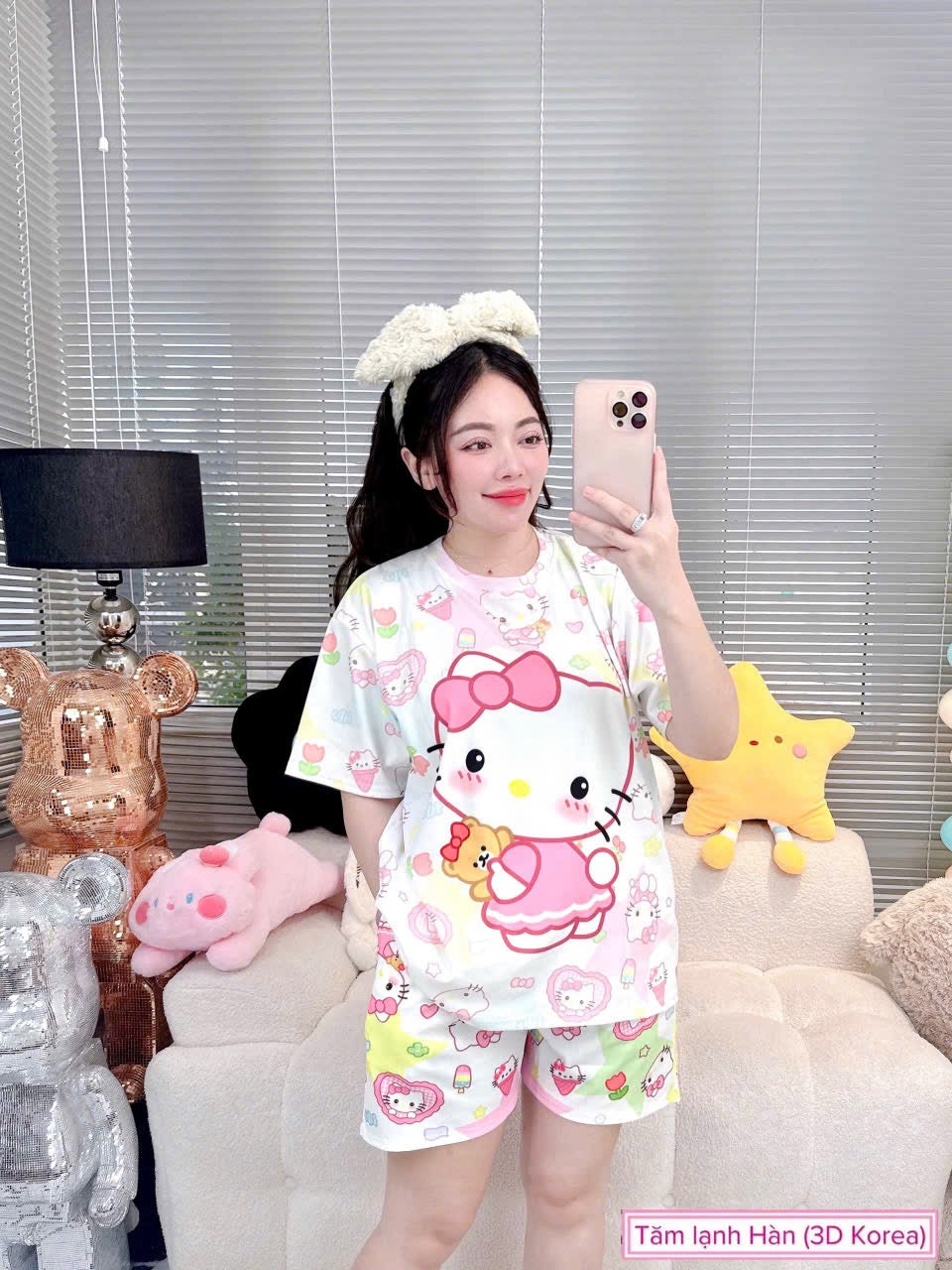 Pink Hello Kitty Ribbed Cotton Pajama Short Set