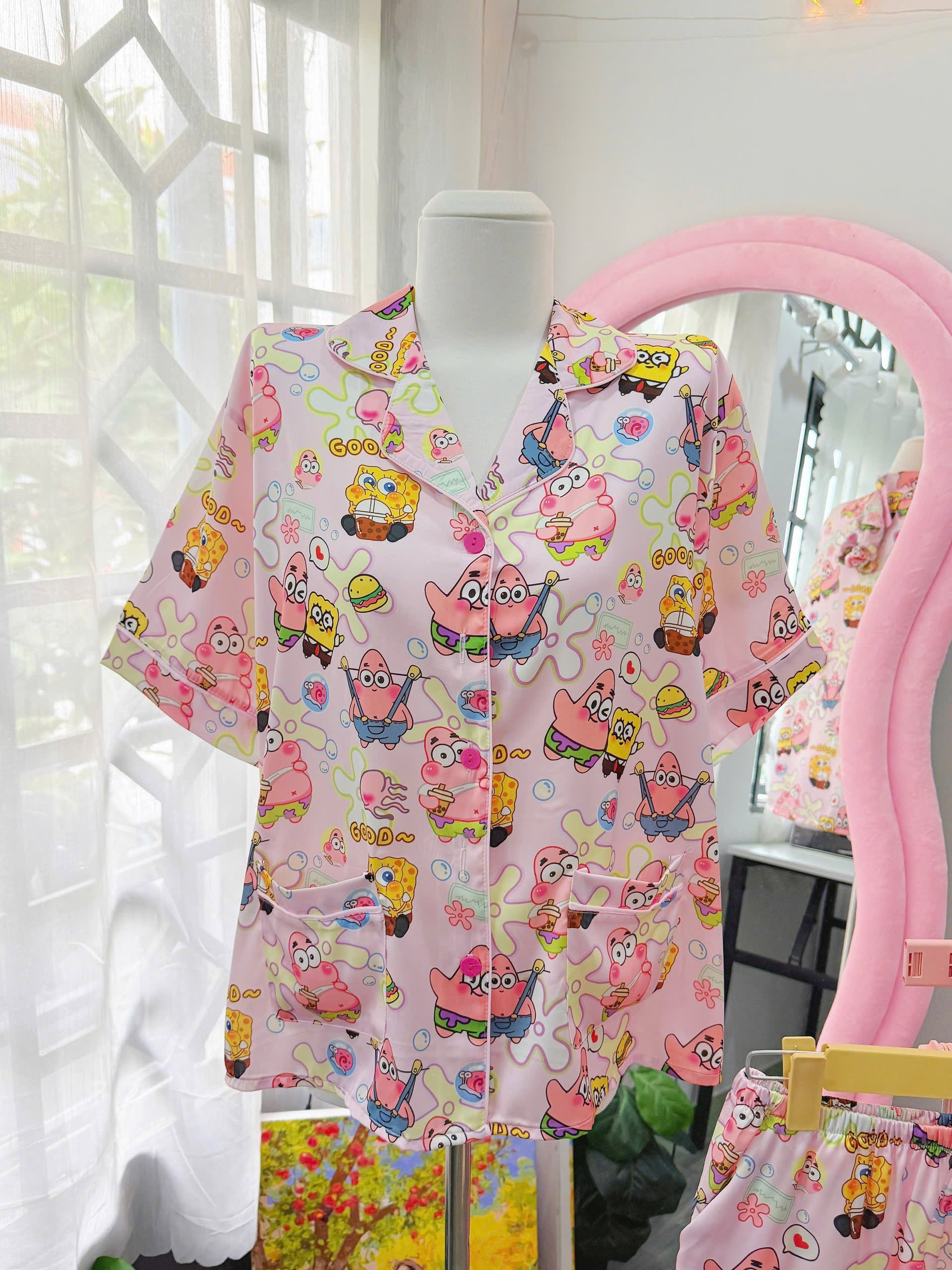 Pink Spongebob Satin Pajama Short Set