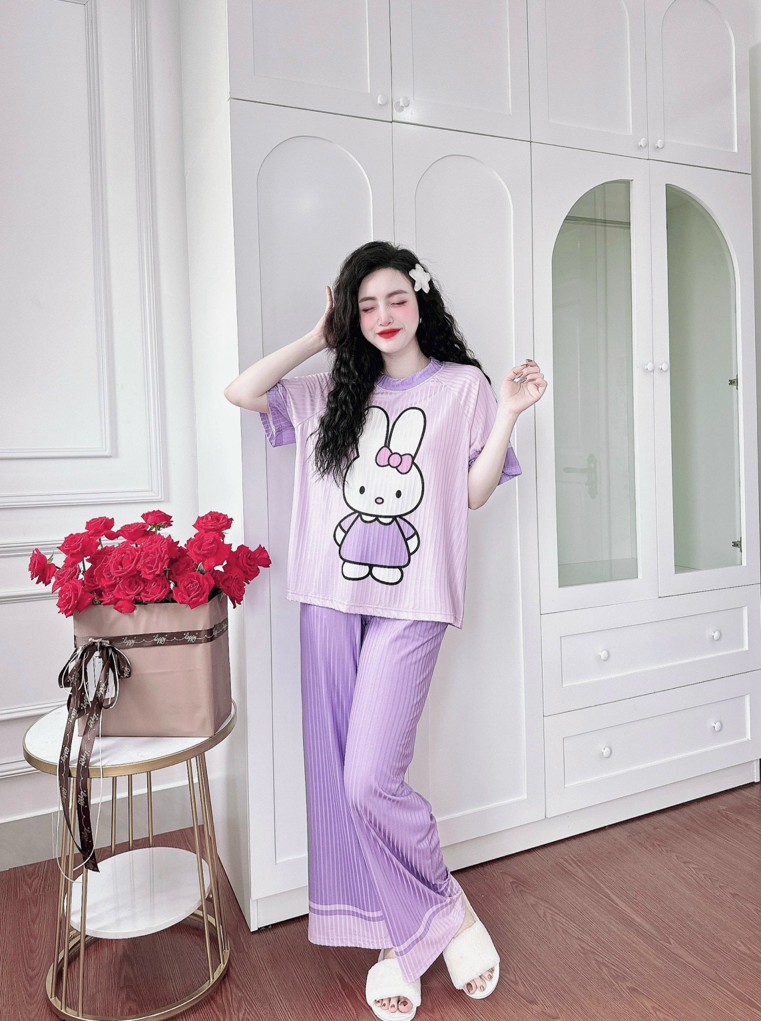 Purple Bunny Ribbed Cotton Pajama Short Sleeve